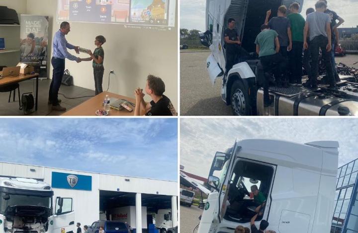 Als kers op de taart werden de leerlingen in groepjes verdeeld en maakten ze een rondritje met de truck en oplegger. Na afloop was er nog tijd voor koffie, frisdrank en koekjes en kregen de leerlingen een zakje TB gadgets mee naar huis als aandenken aan hun leerzame dag. Al met al was het een geslaagde dag waarbij de leerlingen op een interactieve manier kennis hebben kunnen maken met de wereld van vrachtwagens en hun onderhoud.